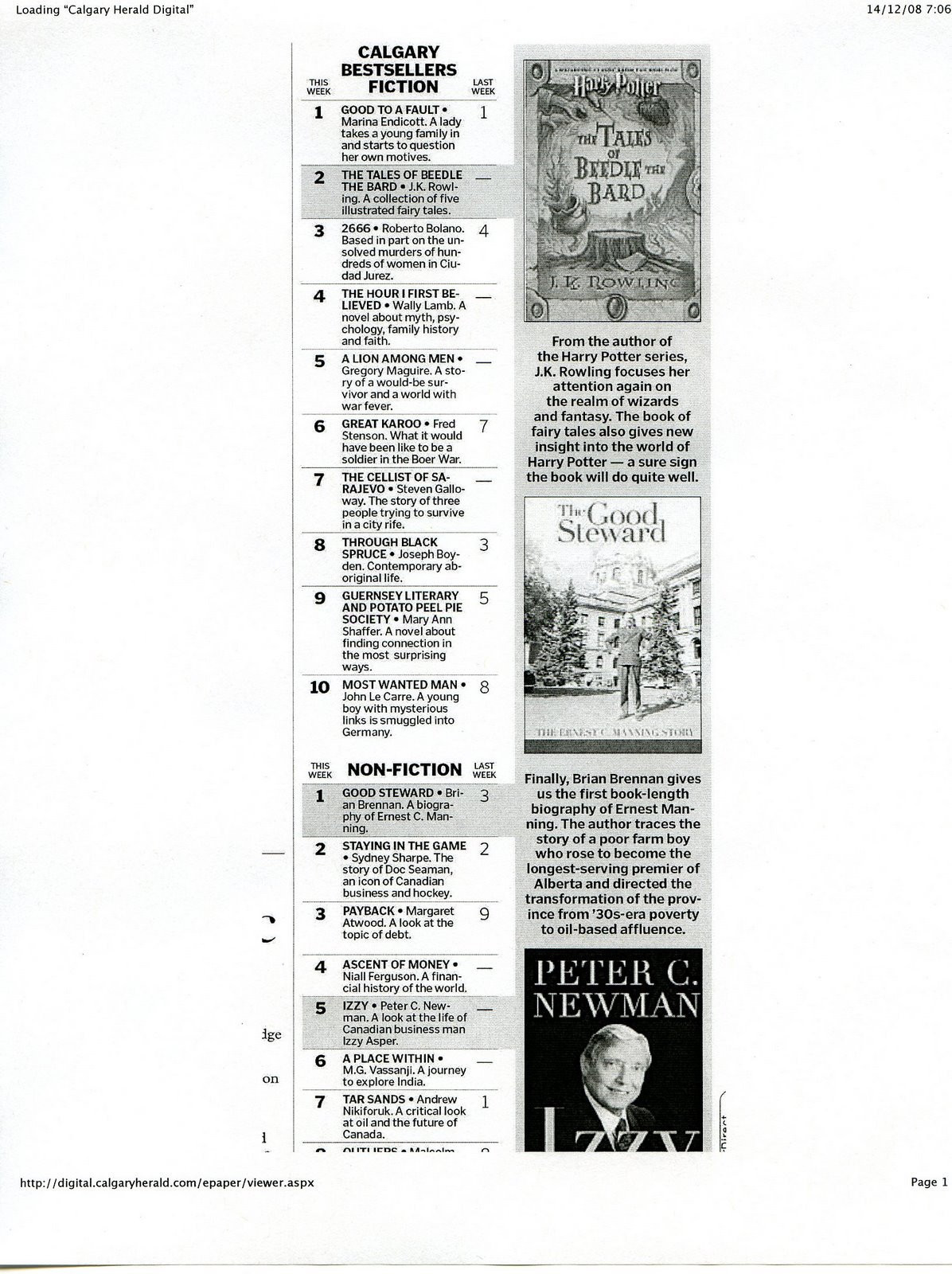 Tune in to the CKUA radio network on Sunday January 4 at 12:30 pm MST to hear me being interviewed about my best-selling Ernest Manning biography on the Bookmark program co-hosted by Brenda Finley. I will post a link to an archived recording of the interview after it has been aired. In the meantime, you can catch it live on the Internet by clicking the “live on-air” button on the toolbar of this page at the appointed hour on 4 January. You can also hear it live at that time by dialing 580 AM on the radio anywhere throughout the province of Alberta.